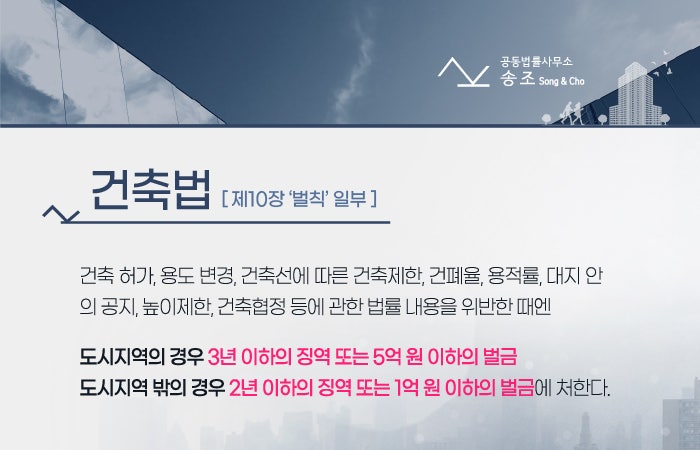 건축법 위반건축물은 건축법 등 관련 조례에 따라 인허가나 신고를 하지 않은 불법건축물로 건축법 위반 건축물에 대해서는 지방자치단체에서 지도 또는 단속을 하게 되며, 이에 근거하여 기소되고 있다. 명령 및 집행 범죄와 같은 위반에 대해. 법률에서 정한 용적률, 높이 등을 위반하거나 무단으로 용도를 변경하는 경우 3년 이하의 징역 또는 5억원 이하의 벌금, 2년 이하의 징역에 처해질 수 있습니다. 또는 시가지 외 행위 시 1억원 이하 과태료 부과 따라서 건물을 짓기 전에 법적인 측면을 고려하여 허가를 받고 합법적으로 건축하는 것이 필요합니다. 적발될 경우 복구 명령이 내려지거나 복구가 완료될 때까지 의무 수수료를 지불해야 할 수 있습니다. 상업용 건물은 허가가 나지 않아 운영이 불가능할 수 있고, 주거용 건물은 전세 대출을 받을 수 없어 세입자를 찾는 데 어려움을 겪을 수 있습니다. 법적 처벌 외에 재산권 행사에 대한 각종 제한으로 불이익을 받지 않기 위해서는 건설법에 경험이 있는 법률대리인과 함께 신중히 검토하는 것이 좋습니다. 생명과 직결되는 문제인 만큼 부적합한 시공으로 골조나 기초가 심하게 파손되면 많은 사람들이 생명의 위협을 받게 됩니다. 건축물의 하자책임기간 중에 건축물의 주요구조물에 심각한 피해를 입혔거나 부실한 시공으로 인하여 당사자에게 최고 10년의 징역형을 선고할 수 있다. 피해자가 죽거나 다치면 무기징역이나 3년 이상의 실형에 처할 수 있어 심각한 문제다. 사고 발생시 본인도 모르게 높은 과태료를 피하기 어려우므로 건설법 관련 법률대리인과 함께 탄탄한 대응 방안을 마련하는 것이 좋습니다. 건축법 위반은 불법건축물에 국한되지 않고 방화, 난방 등 법규 위반, 허위 또는 잘못된 방법으로 주택을 제공하는 등 다양한 경우를 포함한다. 잘못된 대응 방향은 피해를 확대시키기 때문에 비전문가가 스스로 판단하기 어려우므로 전문 건설법인의 조력이 필요하다. 건축법 위반으로 형사 고발이나 경찰 수사 대상이 된다면 조속히 변호사의 도움을 받아 건축 전문 변호사와 상담하는 것이 좋습니다. 법원은 불법구금 기타 불법행위의 시기와 정도 등을 종합적으로 심사하여 책임 소재를 규명하고 처벌을 결정하며 과도한 처벌을 받지 않도록 노력합니다. 행정처분을 받아도 원상회복이 불가능하다는 이유로 법적 조력을 구하고 법원에 선처를 구해야 한다. 무작정 무고를 부인하면 형벌만 가중되는 것이 아니라 경제적 손실도 커지기 때문에 무턱대고 책임을 회피하기보다는 법정대리인 심사 전략으로 대응하는 것이 바람직하다. 건축법 위반과 관련된 법적 분쟁은 벌금으로 끝나지 않으며, 고액의 손해배상 청구 및 소송이 가능하므로 더 큰 피해가 발생하기 전에 법률대리인과 상담을 하시면 피해를 최소화할 수 있습니다. 이렇게 막대한 투자금을 잃지 않으려면 법률적인 도움을 받으시기 바랍니다. 부동산 케이스 이응주 법무법인 온온, 케이스스터디/뉴스리포트 케이스스터디 바로가기 (21-04-09) 상가임대차계약해지 분쟁에 휘말리지 않기 (21-04-09 내외경제TV) 참여하기 상가임대차계약 분쟁 ▲원문 blog.naver.com 바로가기 이응주 변호사의 형사/부동산/건설법센터 : 네이버 블로그 탐정/부동산/건설분쟁! 이응주 변호사가 복잡하고 어려운 문제를 해결해 드립니다.광고담당자 : 이응주 변호사 상담전화 : 031-217-0051blog.naver.com 이응주 변호사 부동산 전문가 서울시 광교중앙로 248번길 7-2 B동 701호, 702호 경기도 수원시 영통구 도로변