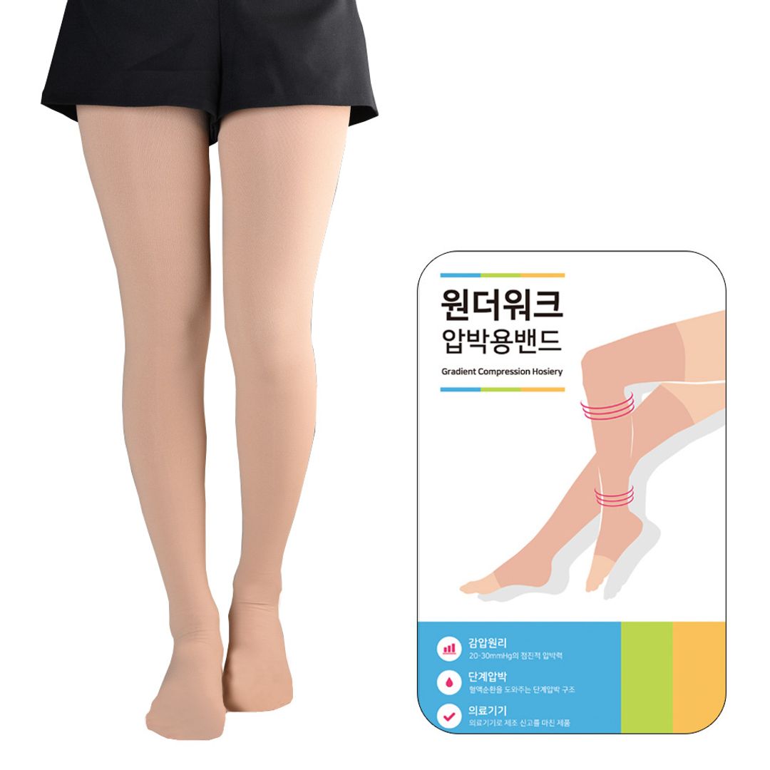 압박 밴드나 압박 스타킹을 신고 있으면 탈착이 매우 힘들 거라고 생각하지요?압박용 제품의 경우 신축성이 있기 때문에 처음에는 착용하실 때 힘드실 수 있으나 2~3회 정도 착용해 보시면 체형에 맞게 막상 생기시고 그 후에는 편안하게 착용하실 수 있습니다.