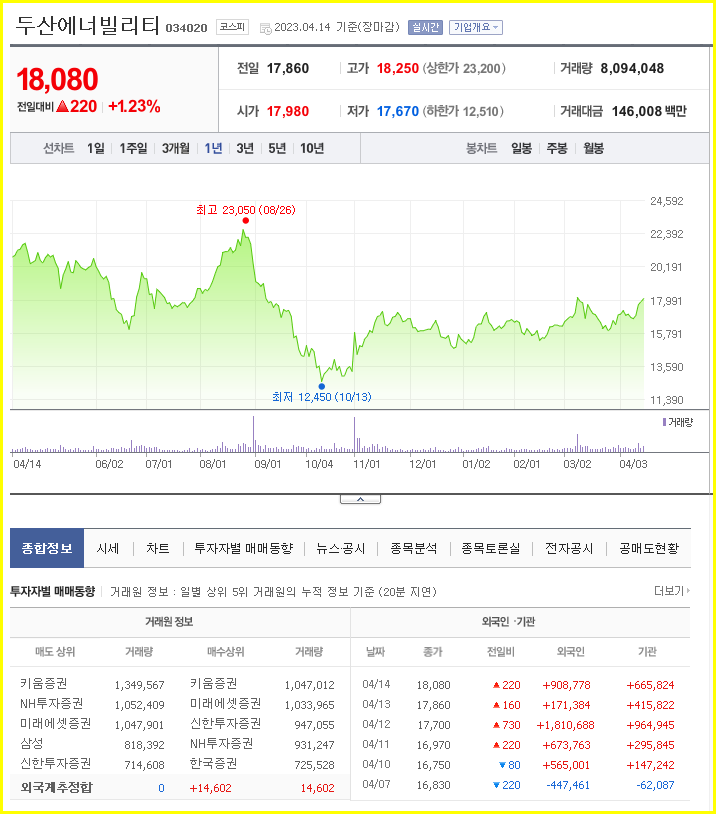 두산인에이블의 주가 전망, 목표주가, 기업정보에 대해 설명합니다. 주식에 투자하기 전에 회사의 현황과 현재 시장 동향을 살펴보는 것이 매우 중요합니다. 두산에너지 주식의 주요현황과 투자정보를 확인하고 시장에 따른 주가현황을 분석해 보겠습니다.
